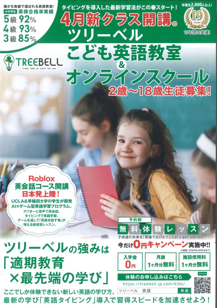 この春、新入学 新入園はもちろん、学年が進級する方、最初の第一歩を踏み出してください!ツリーベルで!