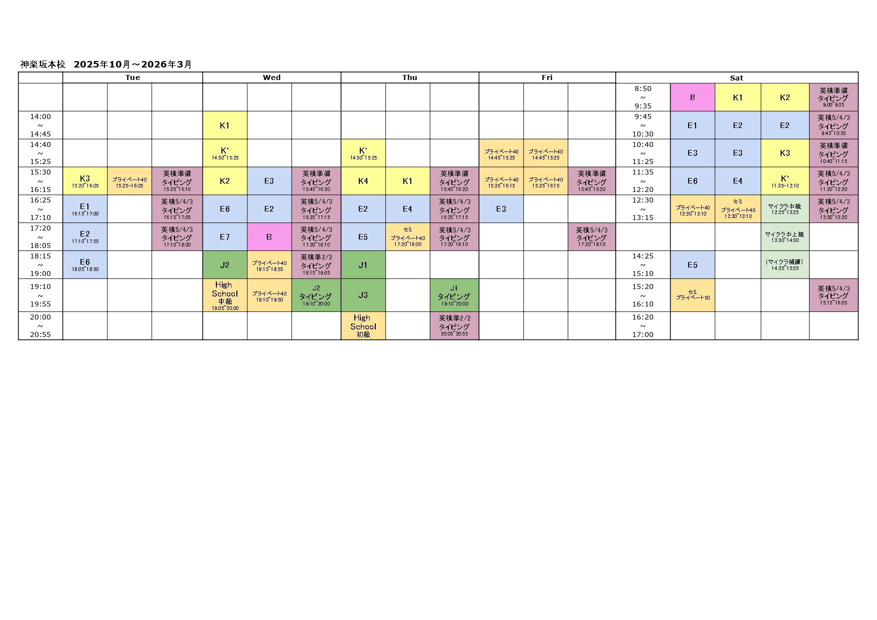 実施中のレッスン ツリーベルには年齢別・能力別に豊富なクラスを用意しております。お子様の年齢・実力に応じたクラスでお子さんの能力を最大限引き出していきます。 耳の発達が早い乳幼児には乳幼児クラス、遊びや楽しさを重点的に英語に慣れる園児クラス、会話を楽しむ小学校低学年クラス、文法も含めて大人との会話の成立、文章表現を目指す小学校高学年クラス、そして実践的な英語レッスンが積める中学校クラス、さらに神楽坂本校は子供だけではなく大人も楽しめる会話強化クラスも設定し、様々なクラスを用意しています。得意不得意に合わせて少人数レッスンだからできる英語教室。身に着く力の違いがきっと実感頂けると思います。